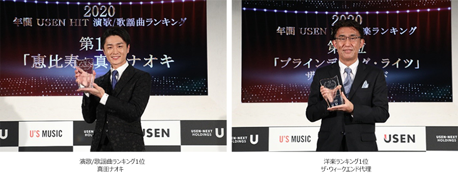 USEN-NEXT GROUPの株式会社 USEN(本社:東京都品川区、代表取締役社長:田村公正)は、『2020年間 USEN HIT ランキング』の発表にともない、2020年12月4日(金)『2020年間 USEN HIT ランキング』総合ランキングおよび洋楽ランキング、演歌/歌謡曲ランキング表彰式を行いました。