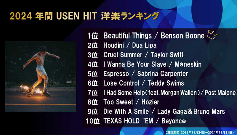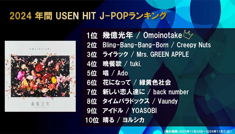 2024 年間 USEN HIT J-POP/洋楽ランキング