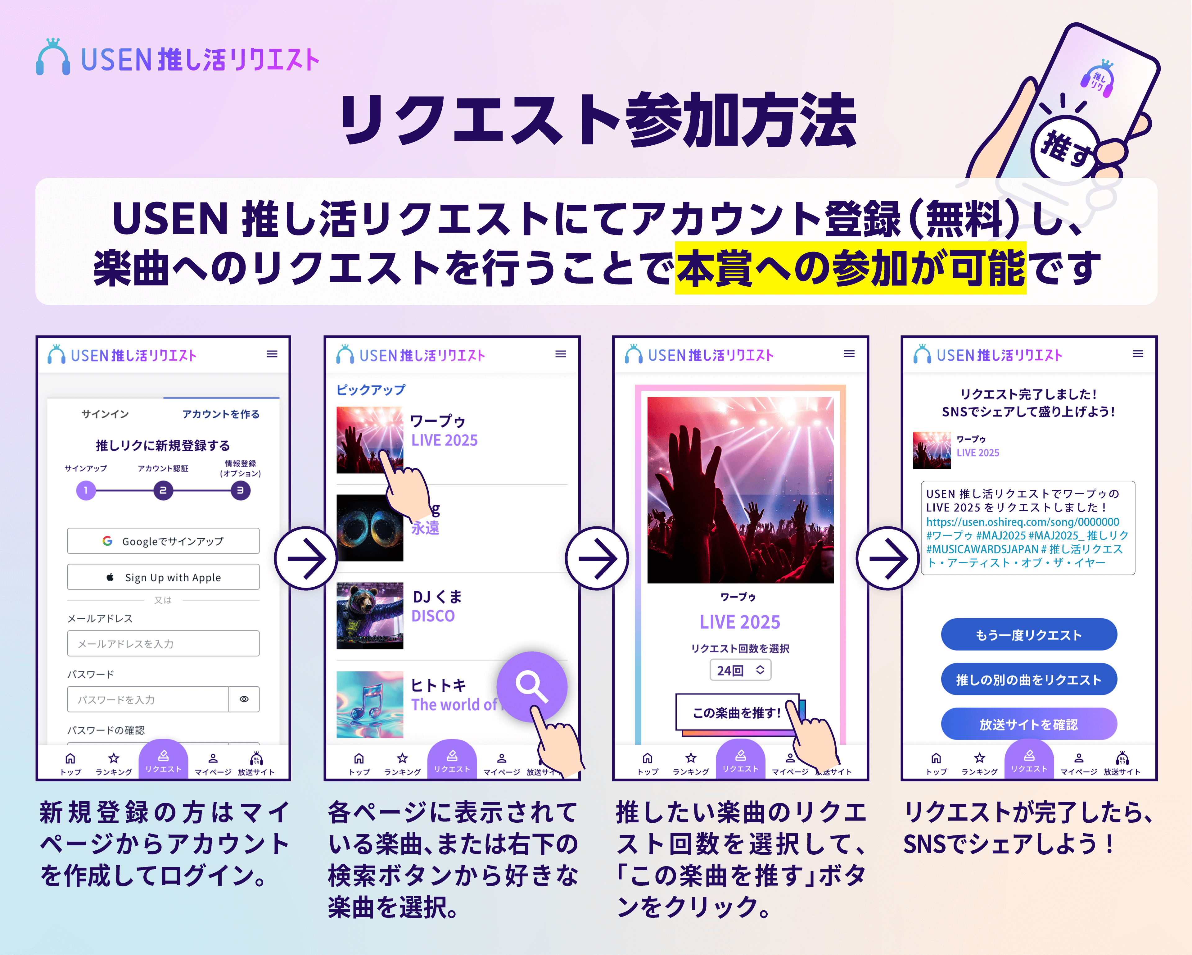 "推し"のアーティストの応援にぜひ、ファンの皆様からのご参加をお待ちしております!