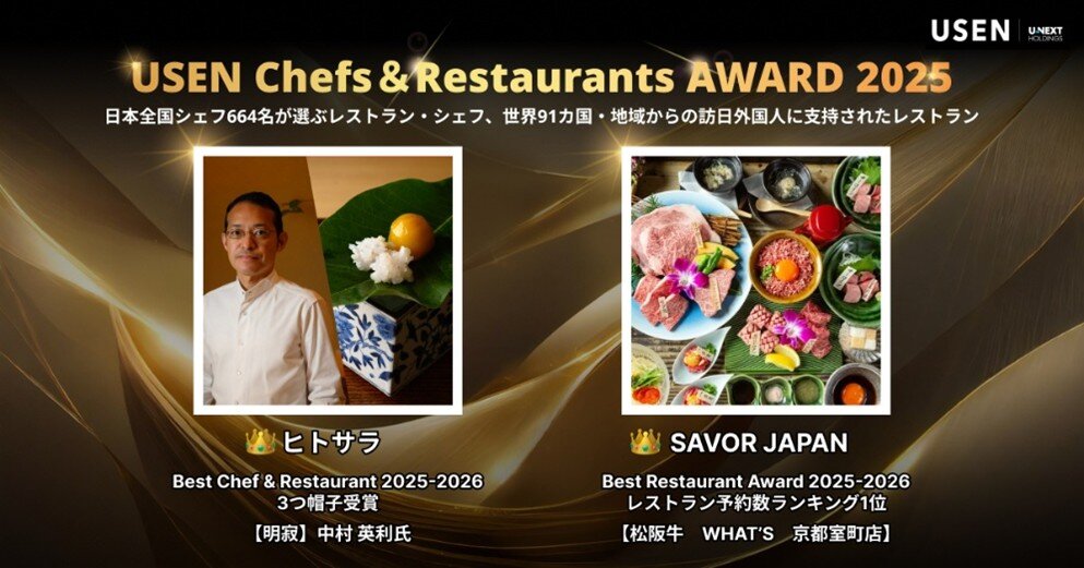 USEN&U-NEXT GROUPの株式会社USEN(本社:東京都品川区、代表取締役社長:貴舩 靖彦、以下、当社)は、本日1月15日(木)、『USEN Chefs&Restaurants AWARD 2025』を発表したことをお知らせします。