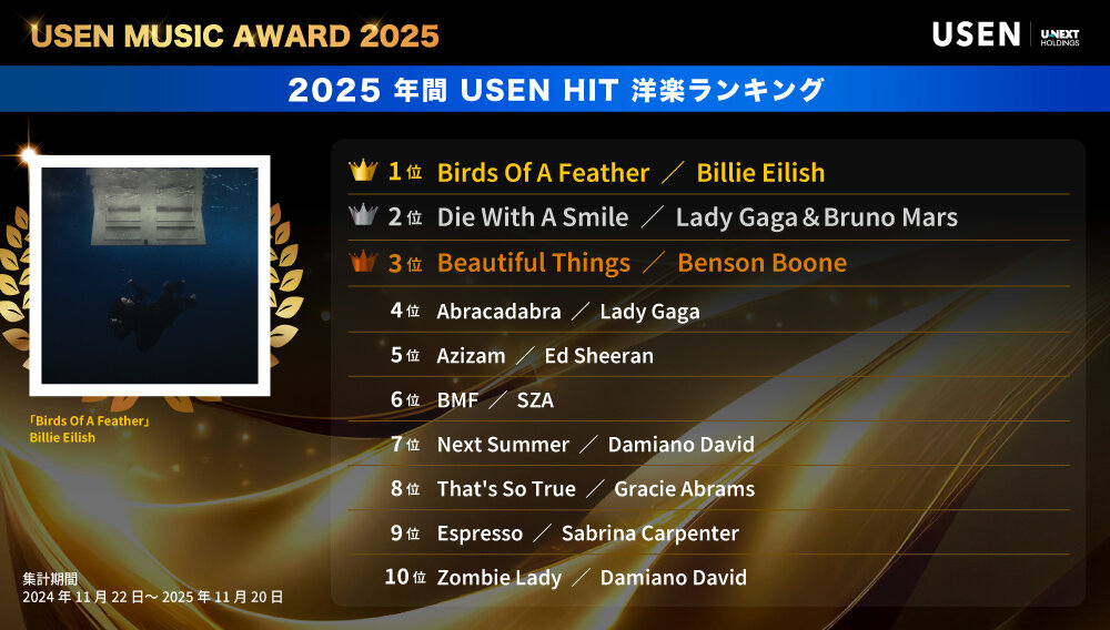 【洋楽部門】2025 年間 USEN HIT 洋楽ランキング