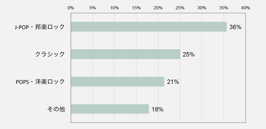 普段聴く音楽のジャンルは「J-POP・邦楽ロック」、「クラシック」、「POPS・洋楽ロック」が多く挙げられました。J-POPの人気は言うまでもありませんが、「クラシック」や「POPS・洋楽ロック」も人気でした。
